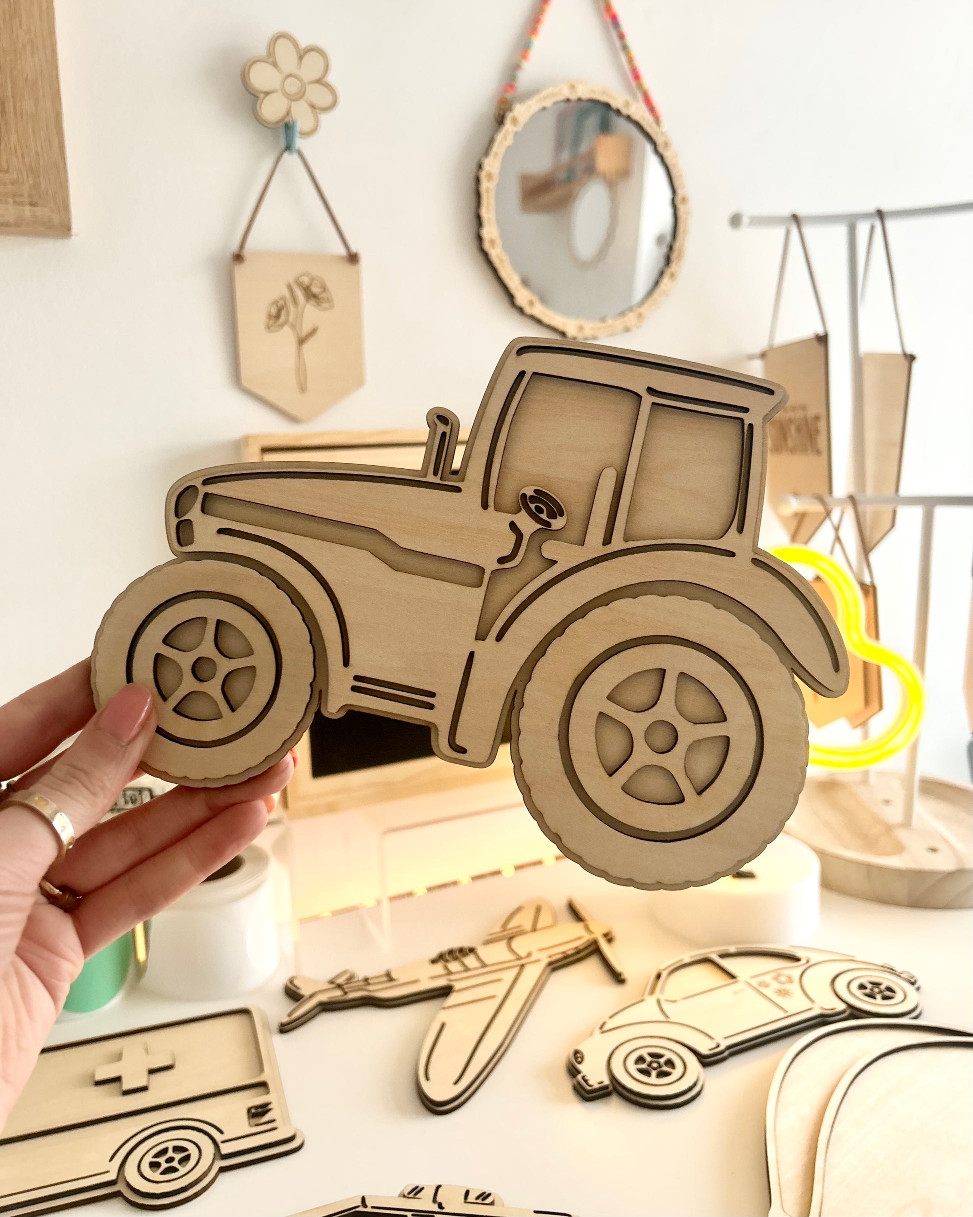 Bring your farm themed room to life with out wooden Tractor 🚜 A great addition to your nursery or playroom 🤎