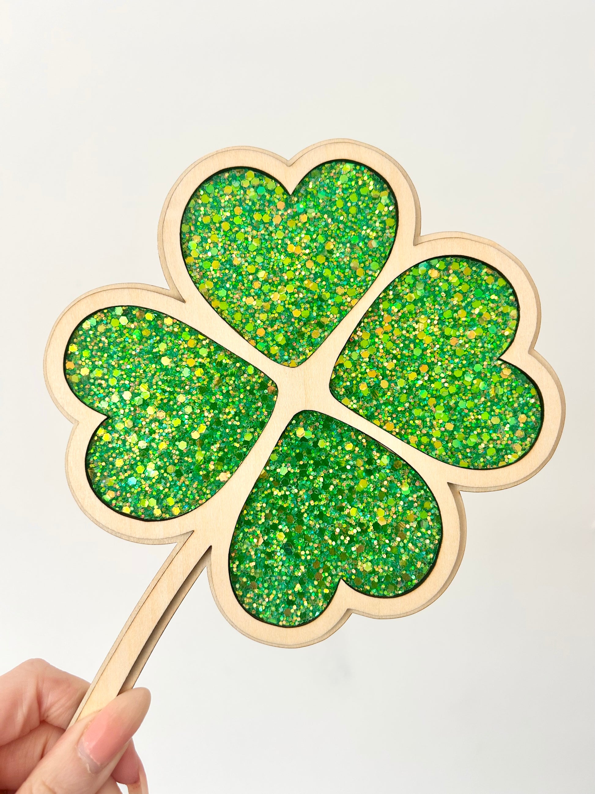 Our clover shape is complete with Green glitter 💚