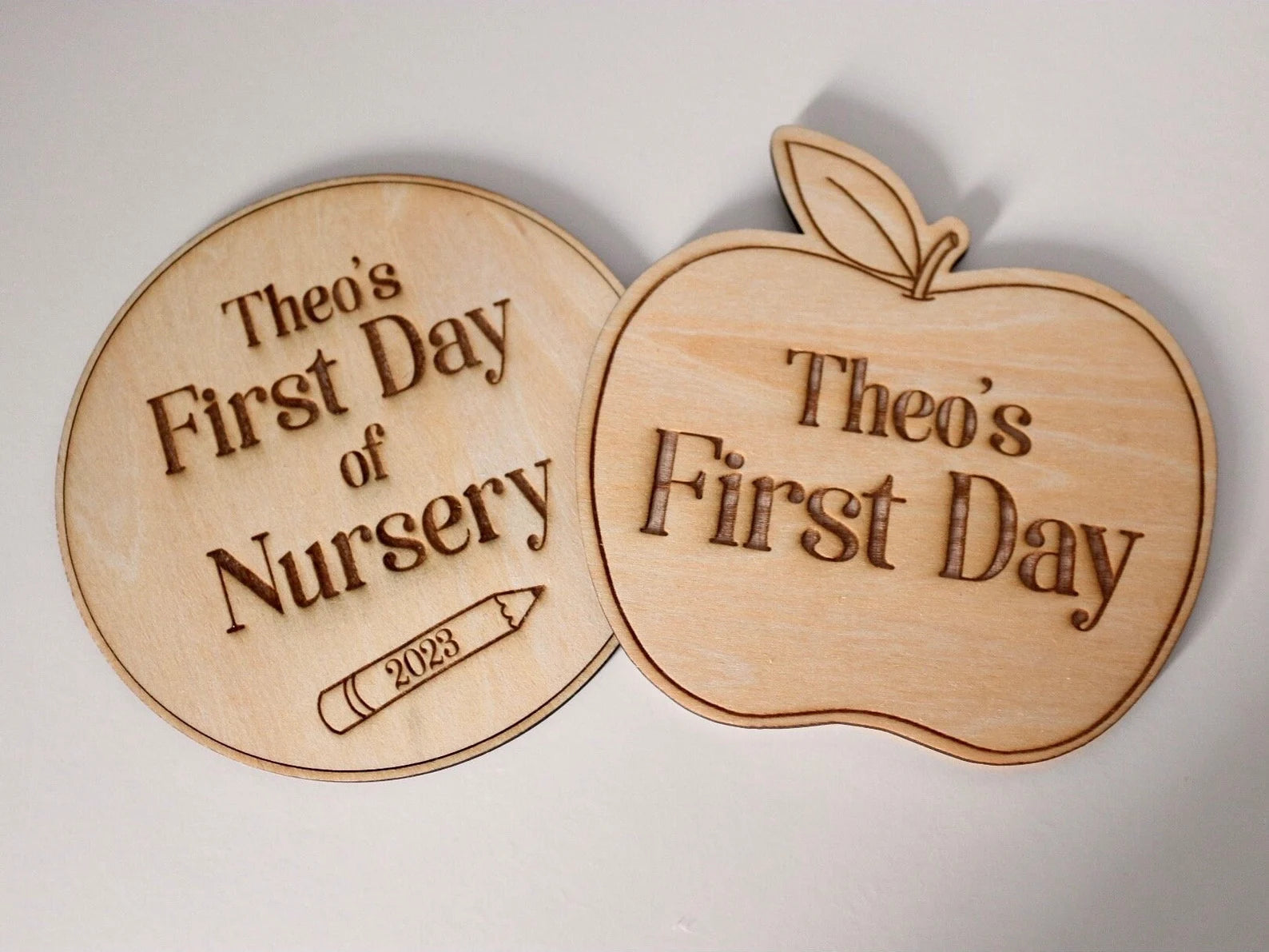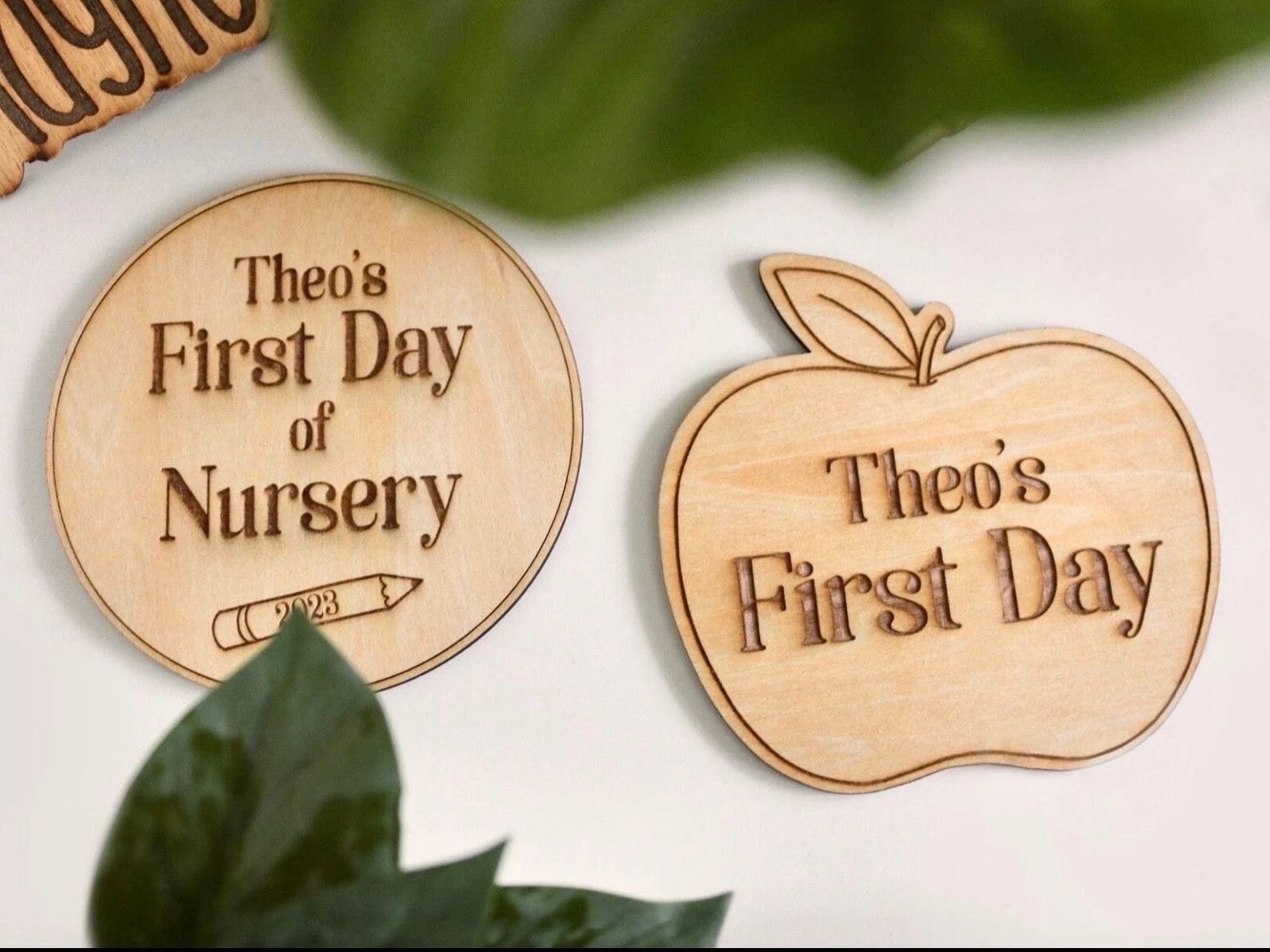 Choose from our apple or circle with pencil design and personalise our 10cm wide prop with the Nursery, School or the class year your little one is starting in, such as Year 1 and add their name, as well as the option to add the date. TOP TIP - if you want to reuse year after year why not just add ‘____’s First Day’ ✏️