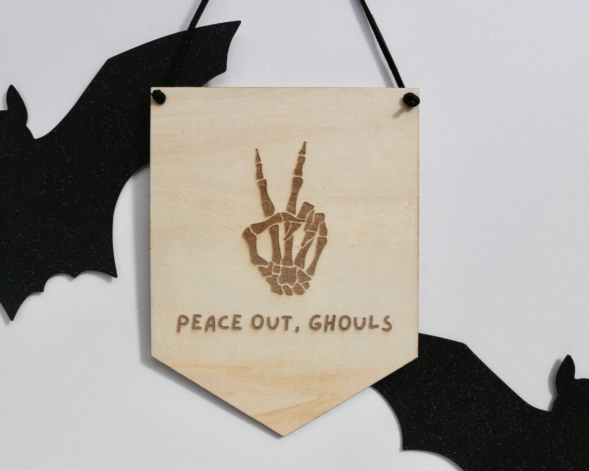 Wooden 15cm Halloween Peace Banner